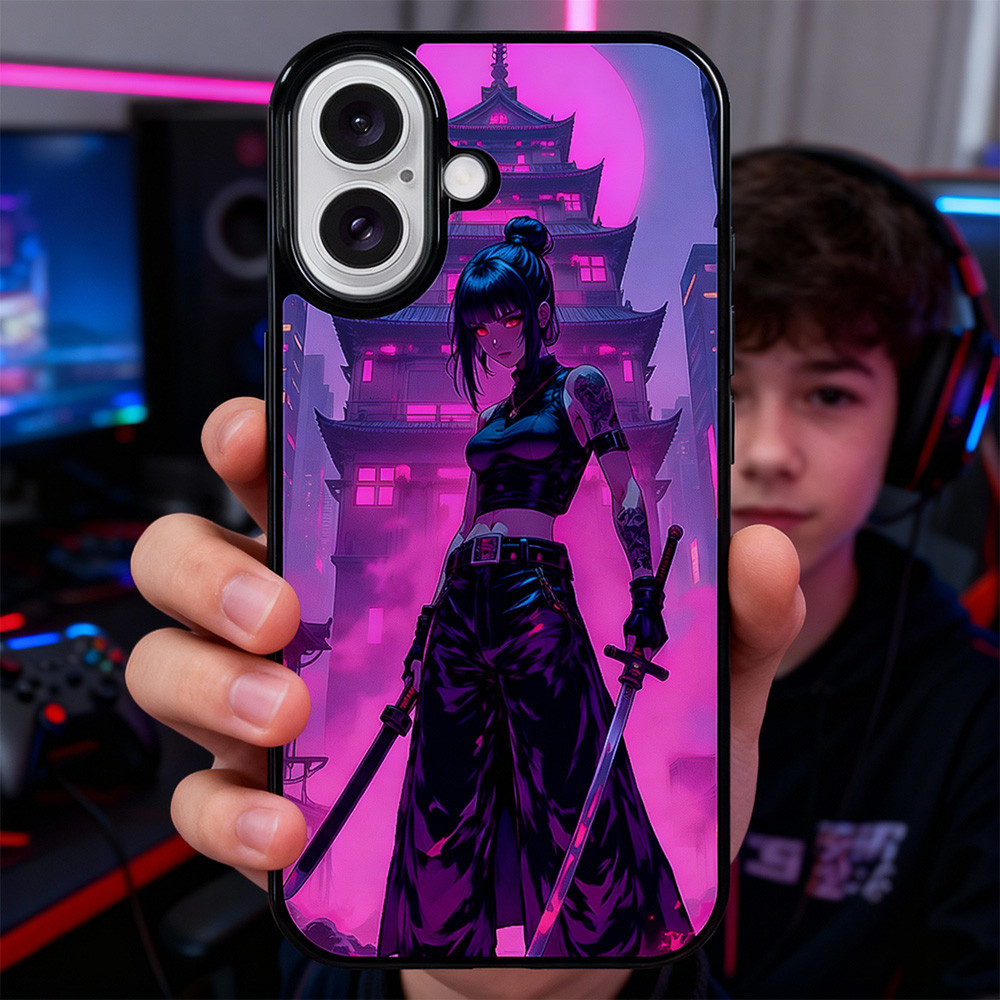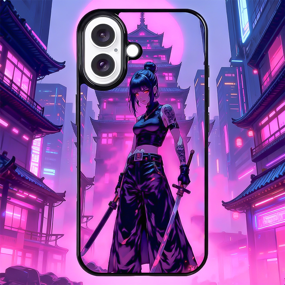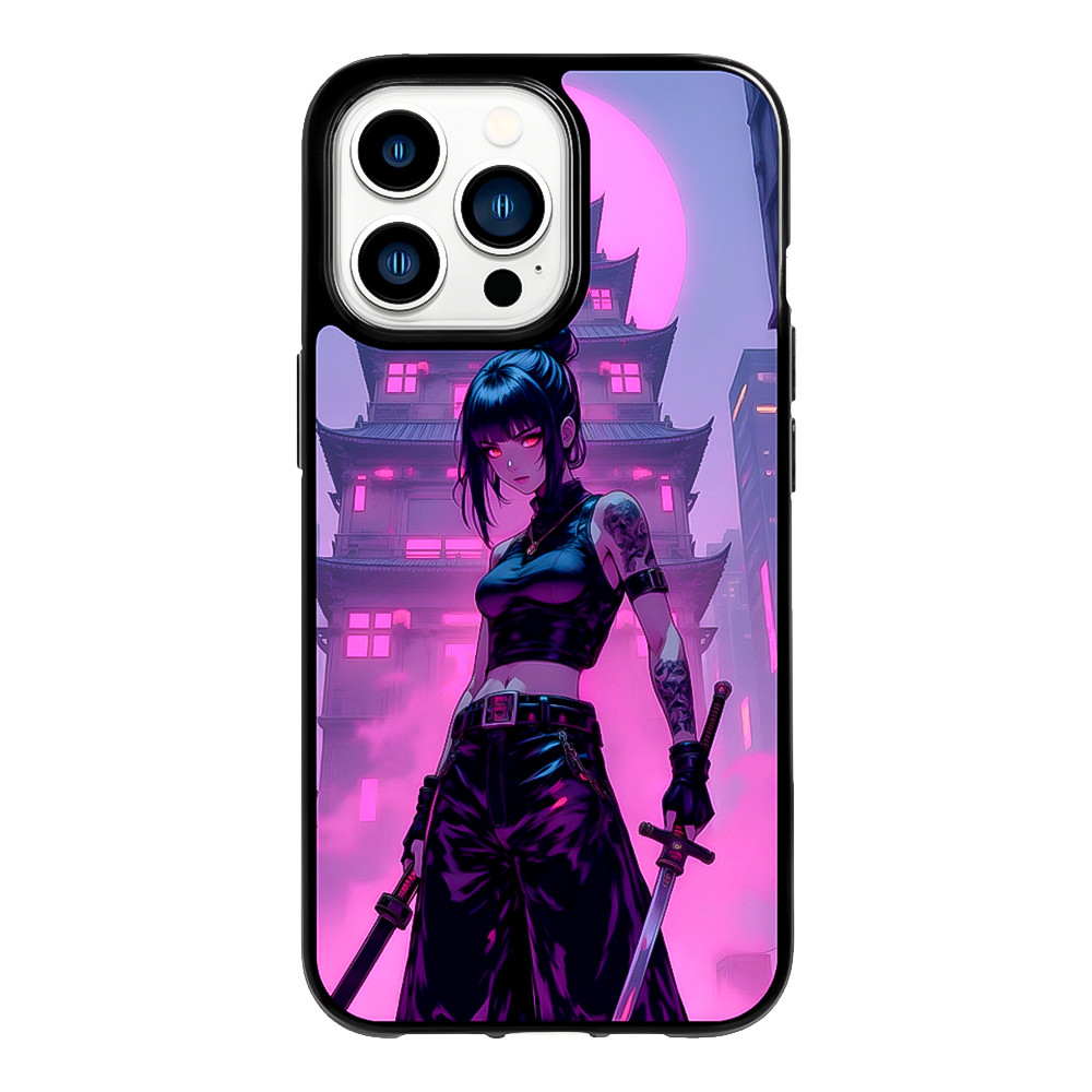 Alliez design japonais et protection premium avec la Coque iPhone Manga Samouraï Néon. Une coque Samouraï inspirée des rues de Tokyo et des univers cyberpunk, elle habille votre iPhone d’une guerrière au katana éclairée de teintes rose et violet néon.